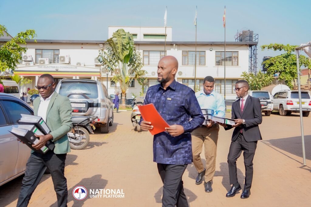 Pulezidenti wa NUP, Robert Kyagulanyi Ssentamu azizzaayo empapula eri akakiiko k’ebyokulonda eziriko emikono gy’abantu abamusemba okuvuganya ku bwa Pulezidenti mu kalulu ka 2026.
